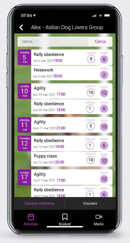 Allow all your customers to see your courses in their dog lovers app with description and photo of the activity and book or pay through in-app purchases.