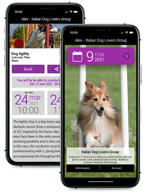 If you manage a dog lovers center or you are a dog trainer, you’re in the right place. With BookyWay you can create the schedule of all the courses and activities you keep for dogs: “Agility, Obedience, Defense, Fly Ball, Rally-obedience, Disc Dog, Utility and Defense Tests, Mondoering, Hunting Dog Tests, Coursing, Mantrailing, Dog Dance, Socialization, Truffle Training, Nosework, Puppy Class, Courses For sled, livestock guardian dogs, civil protection, dog’s den training…