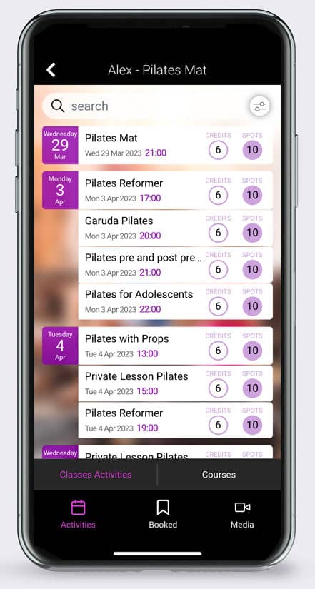 Unlike other Pilates management software, with the Bookyway app your customer will only see YOUR pilates studio and activities.