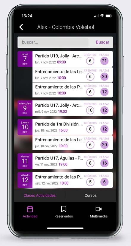 Permite a los atletas saber si están convocados en entrenamientos o partidos con otros equipos. Por ejemplo, un atleta de 15 años podrá ver en la App si ha sido convocado con el equipo sub-17 o para un partido de tercera división y usar el navegador para llegar a la cancha designada.