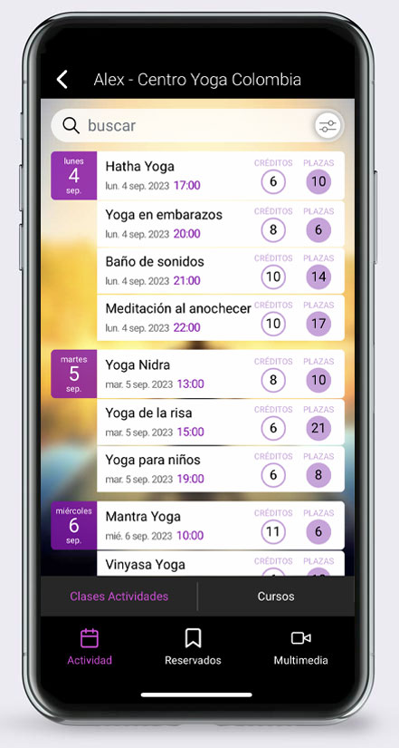 Ya no tendrás que gestionar las reservas por télefono, vía WhatsApp o en papel y podrás usar la cartelera virtual y las notificaciones del télefono para tener siempre actualizados a tus clientes sobre las actividades de tu estudio de Yoga.