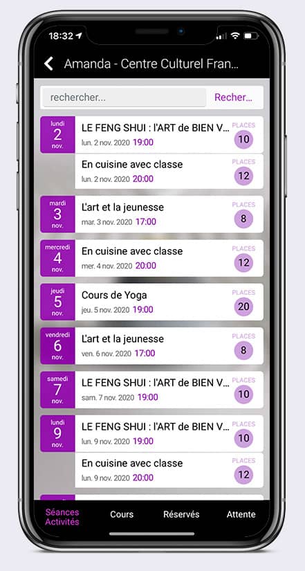 Permettez à tous vos clients de voir ces activités dans leur appli sur smartphone et de réserver ou de se mettre sur une liste d’attente pour les activités choisies..