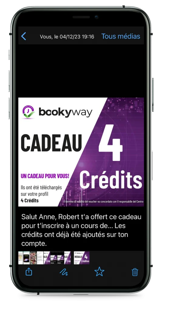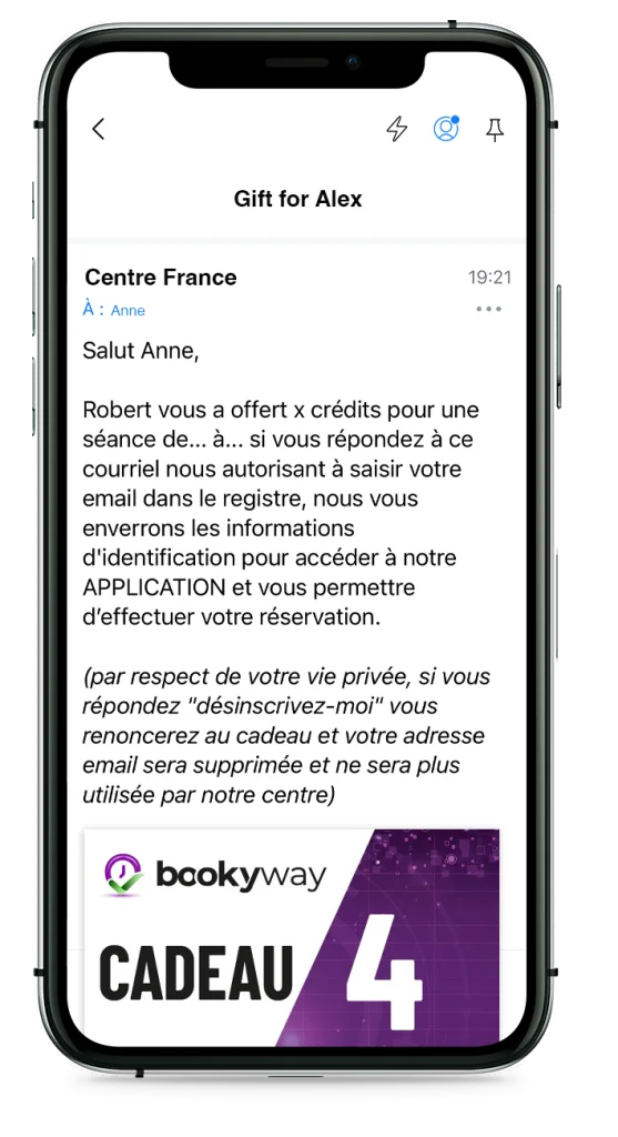 Un cadeau que vous pouvez offrir à un client fidèle comme cadeau de vacances, pour un anniversaire ou comme cadeau pour un client qui n’a pas fréquenté votre centre depuis un certain temps. Profitez-en pour offrir des crédits à utiliser pour vos activités !