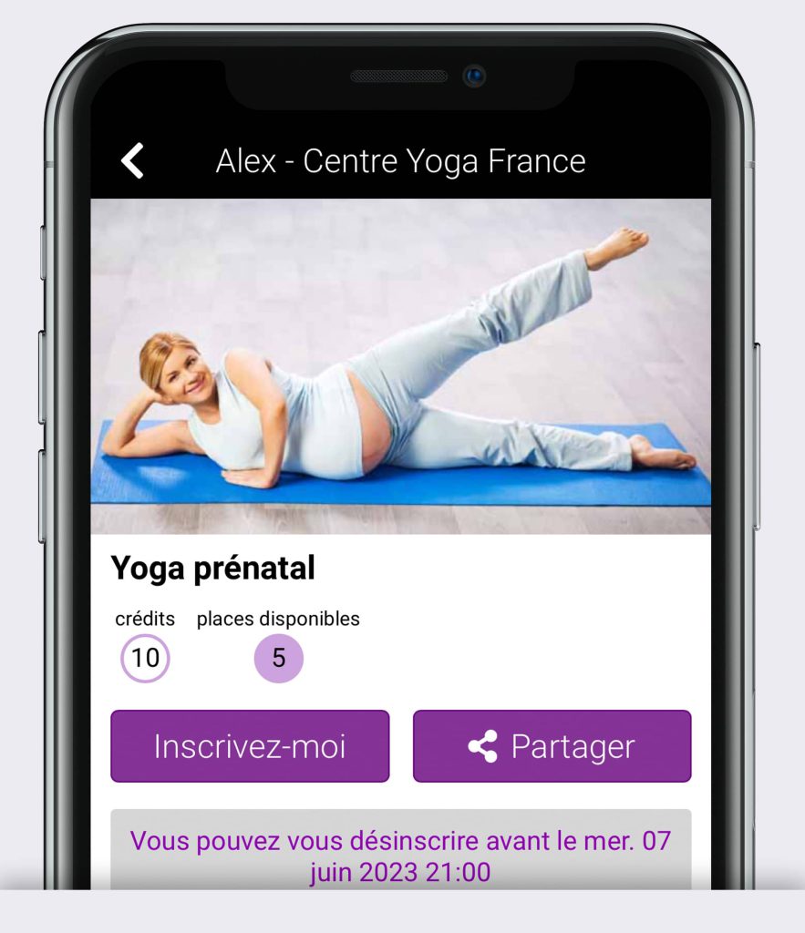 Permettez à tous vos clients de voir vos cours dans leur application de yoga et de réserver ou de s’insérer dans la liste d’attente et de payer via l’application.