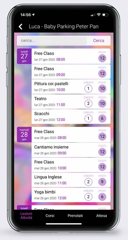 Con BookyWay puoi creare il palinsesto di tutte le attività e i corsi che tieni per i figli dei tuoi clienti all’interno del tuo baby parking o asilo o ludoteca: