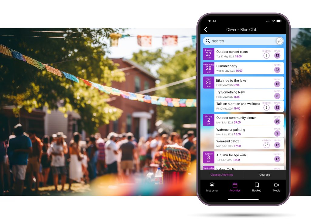 BookyWay non è solo uno strumento per gestire le prenotazioni delle lezioni, ma un alleato prezioso per creare comunità, rafforzare il legame con i clienti e offrire esperienze memorabili. Che tu gestisca una palestra, uno studio di yoga, un centro olistico o culturale, puoi usare BookyWay per organizzare con facilità attività extra: feste, pranzi, open day, escursioni, giornate a tema, incontri speciali… tutto ciò che esce dalla routine e rende il tuo centro più vivo e coinvolgente.