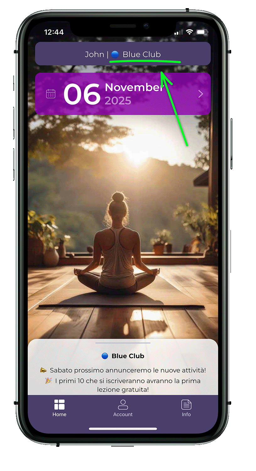 In ogni pagina dell’App, è sempre chiaro su quale account si è attualmente loggati: basta controllare la fascia nera in alto, dove sono indicati il nome del centro e il nome dell’account attivo.