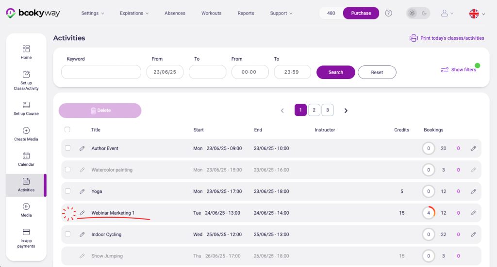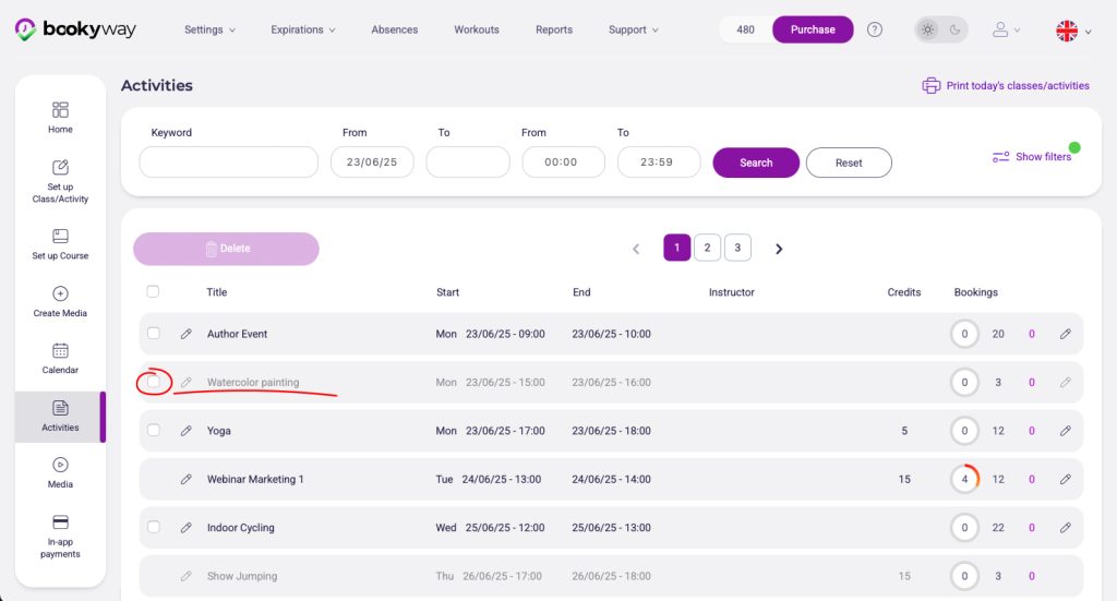 Se vuoi cancellare l’attività, devi prima cliccare su di essa, accedere ai dettagli, e rimuovere manualmente gli utenti iscritti.