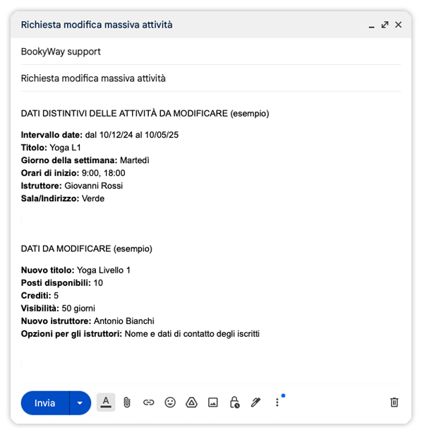 Oggetto: Richiesta modifica massiva attività