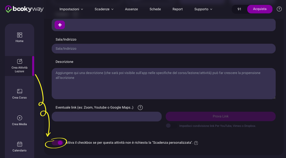 Imposta come obbligatoria la Scadenza Personalizzata.