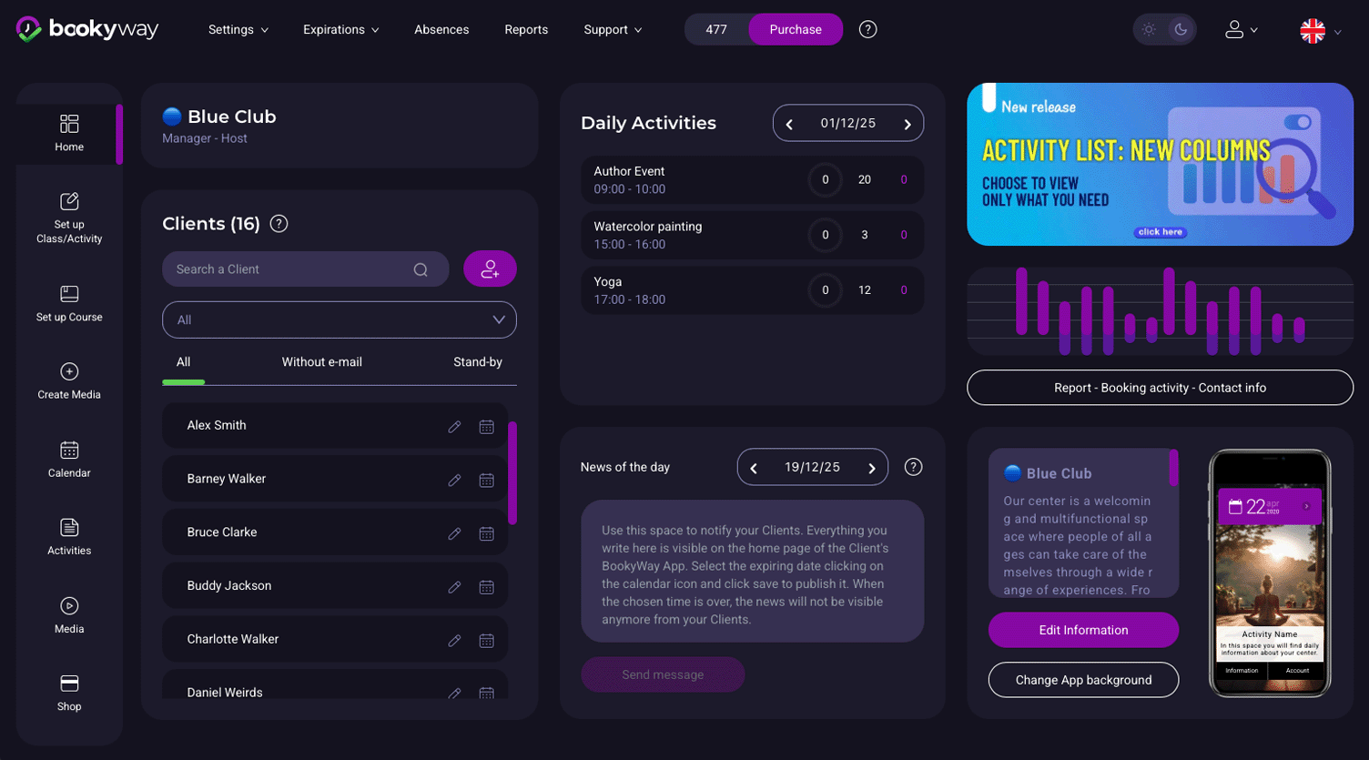 - Nella colonna destra vedrai l’elenco delle attività future alle quali il cliente è attualmente prenotato (se presenti).