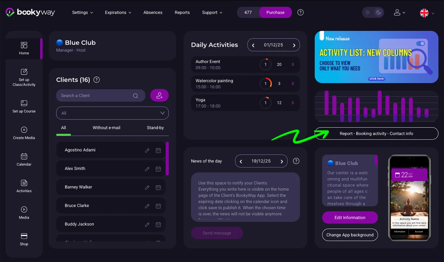 Questo ti permette di individuare subito quali attività il cliente ha prenotato, sia nel passato che nel futuro.