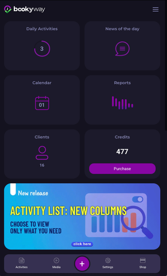 Le attività alle quali il cliente si è realmente iscritto sono evidenziate sulla destra con un check viola.