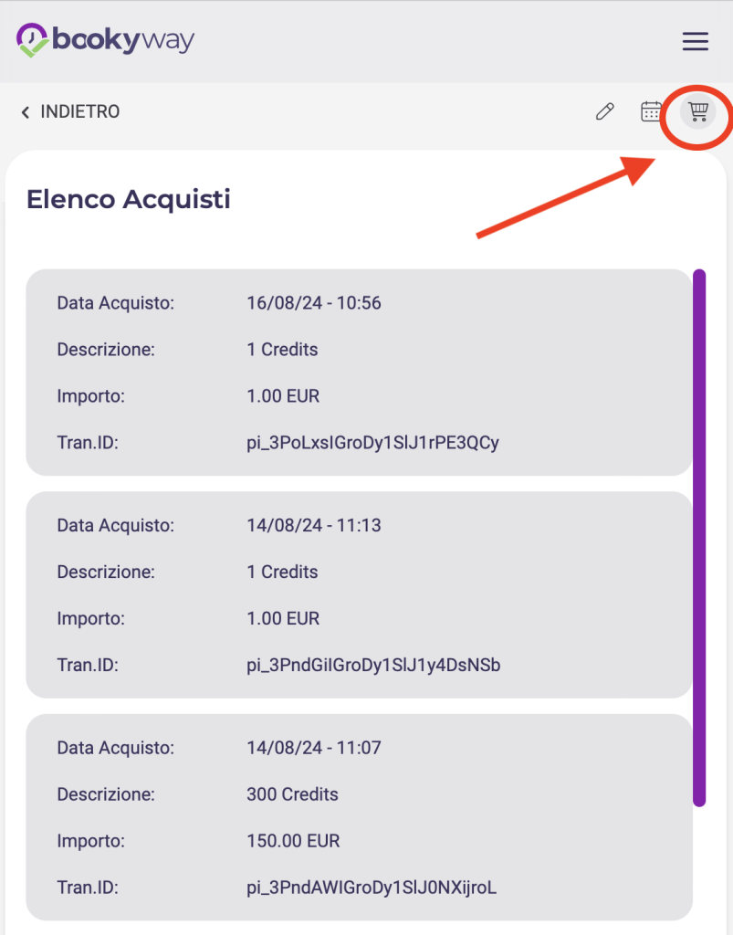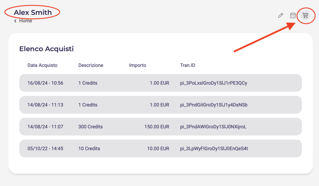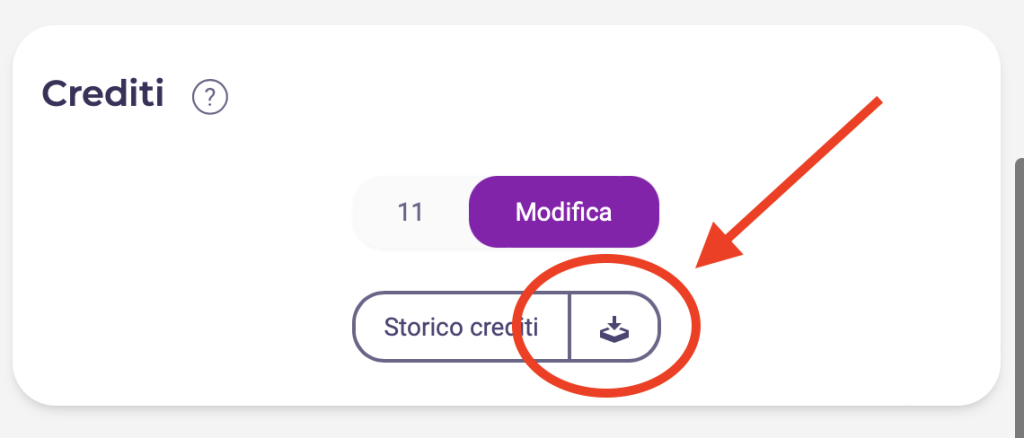 Si accede a questo menù entrando nel profilo dell’utente, nella sezione crediti.
