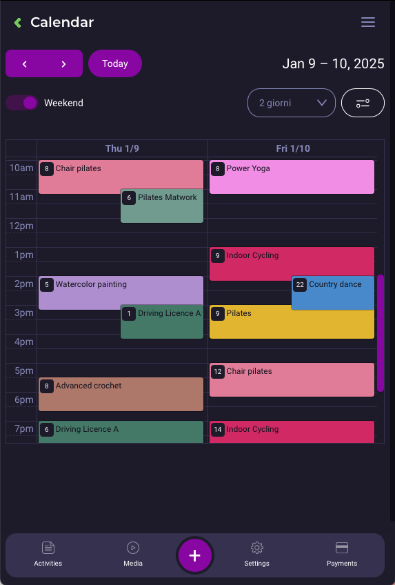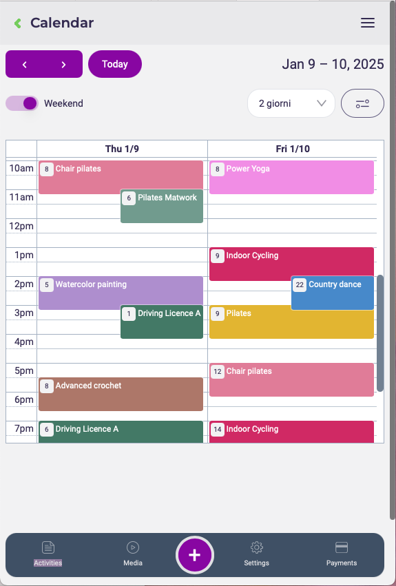 ✅ Ideale per chi organizza attività a slot orari, come studi di personal trainer, centri estetici, ambulatori o qualsiasi realtà che lavora per appuntamenti a intervalli regolari.