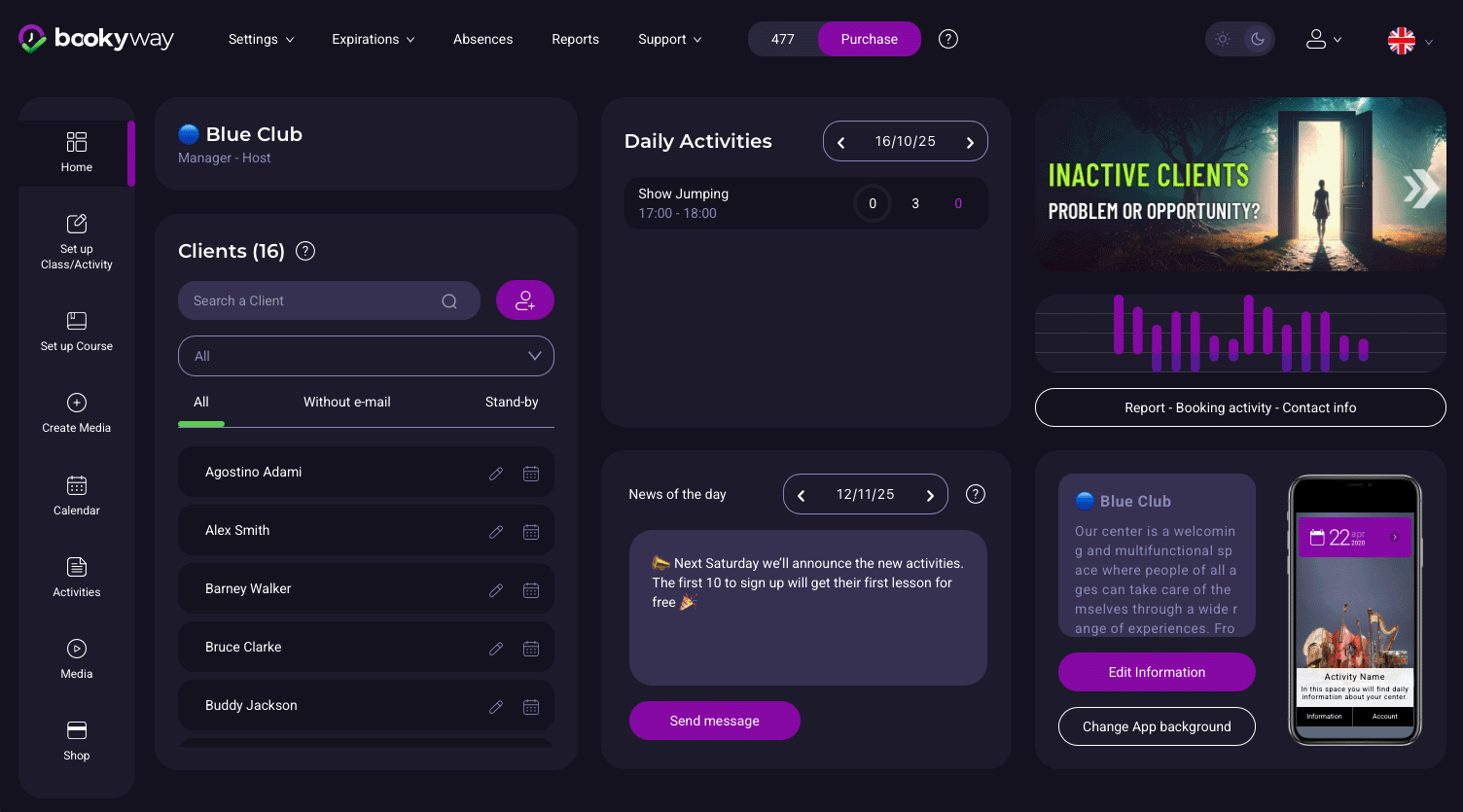 Questa funzione permetterà al proprietario del centro di monitorare o fare delle reportistiche sulle attività dei propri amministratori.