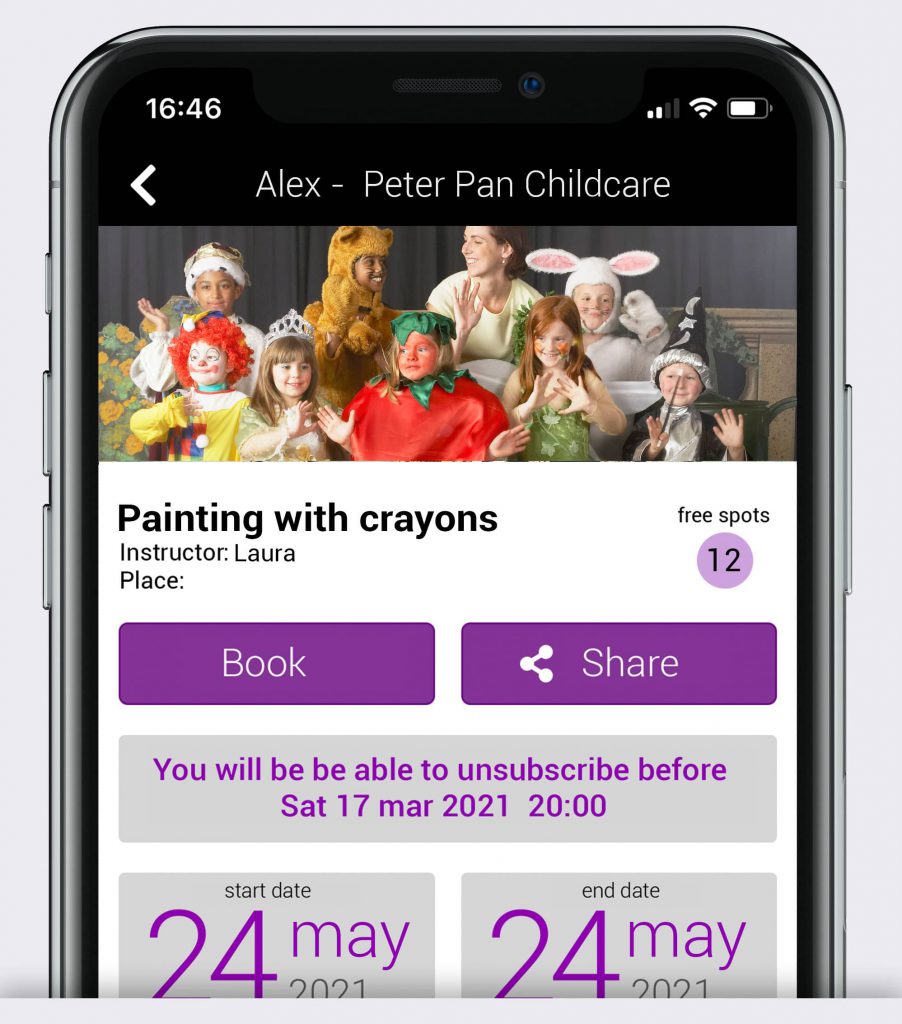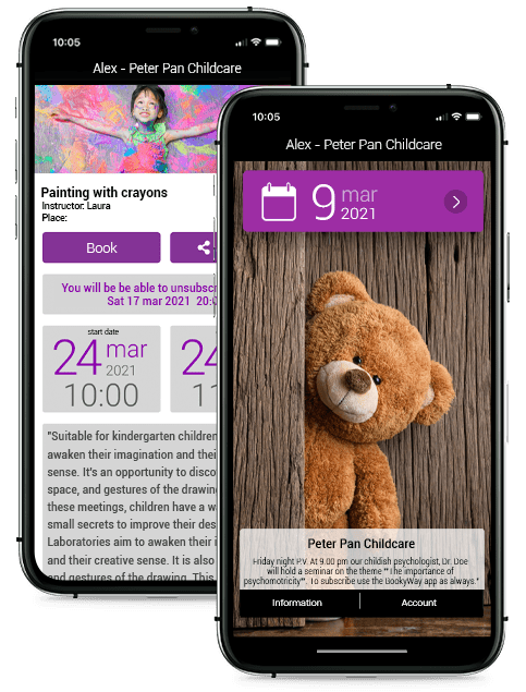 If you manage a childcare, a nursery school, an indoor playground or even simply manage babysitting services, you’re in the right place. With BookyWay you can create the schedule of all the activities and courses you keep for your customers’ children within your childcare or nursery school or indoor playground: Parties, painting, theater, music, dance, aquatics, foreign language lessons, educational workshops, pet therapy, psychomotor, gymnastics, reading, and writing, or others.