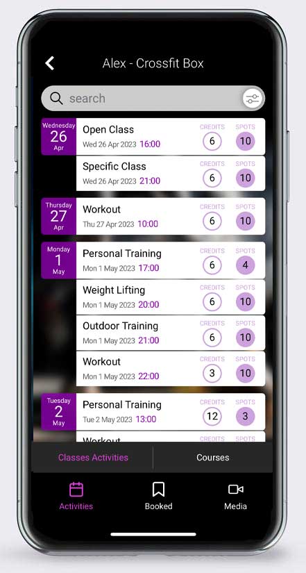 Choose the image you like best from the BookyWay gallery to customize the CROSSFIT booking app for your customers and change it as often as you like.