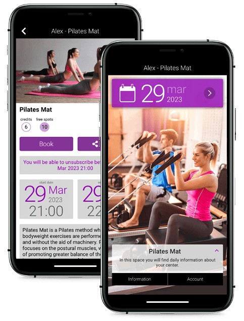 With BookyWay you can create the schedule of all the courses of: Pilates, Pilates Mat, Pilates with equipment, Garuda Pilates, Pilates for kids, Pilates during pregnancy, Postpartum Pilates, Pilates GAG, Pilates Reformer, Pilates Tower…