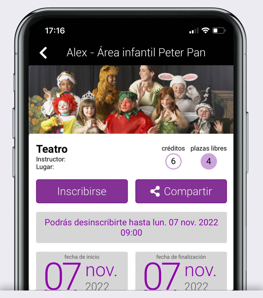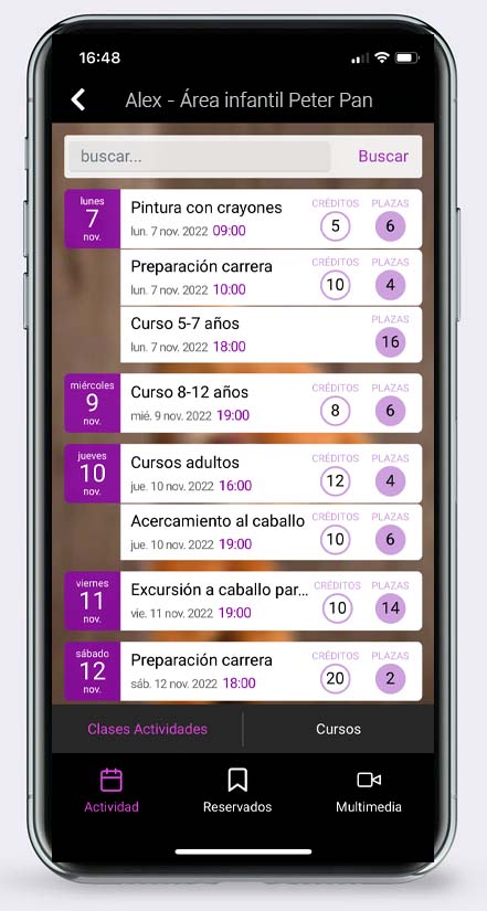 Con BookyWay puedes crear el calendario de todas las actividades y cursos que tienes para los hijos de los clientes de tu área infantil, guardería o ludoteca: fiestas, teatro, música, baile, acuaticidad, clases de idiomas, talleres educativos, apoyo emocional, psicomotricidad, gimnasia, lectura, escritura, etc.