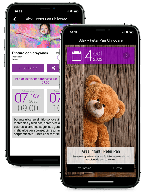 Con BookyWay puedes crear el calendario de todas las actividades y cursos que tienes para los hijos de los clientes de tu área infantil, guardería o ludoteca: fiestas, teatro, música, baile, acuaticidad, clases de idiomas, talleres educativos, apoyo emocional, psicomotricidad, gimnasia, lectura, escritura, etc.
