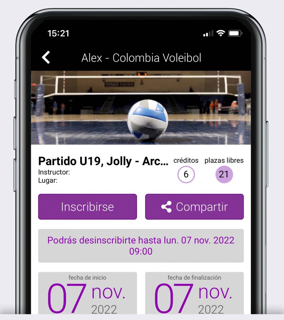 Si ya has creado tu cuenta y estás usando BookyWay para gestionar las convocatorias pero no encuentras imágenes que representen bien tus actividades de vóleibol, escribenos a support@bookyway.com (si es posible anexando ejemplos) y evaluaremos tu solicitud.