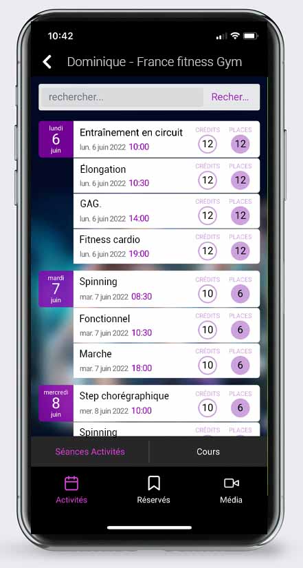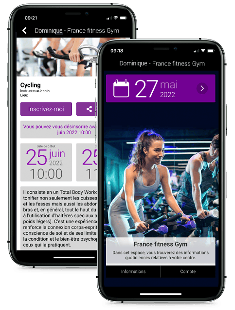 Permettez à tous vos clients de voir ces activités dans l’application de leur salle de sport et de réserver ou de se mettre sur la liste d’attente ou de payer directement via l’appli fitness.