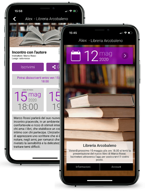 “Semplice, intuitiva, geniale! Ha notevolmente migliorato la gestione degli eventi in libreria. I clienti possono facilmente visionare il calendario delle attività dal cellulare e scegliere di iscriversi alle loro preferite. Io posso sempre monitorare le iscrizioni e gestire tutto da un’unica app in pochi semplici passi.”
