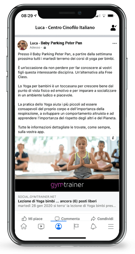 Con BookyWay sia i tuoi clienti che tu potrete condividere le informazioni di una delle tue tante attività via sms, whatsapp, facebook, e-mail, insomma attraverso lo strumento che preferisci per far conoscere velocemente a tanti potenziali clienti tutti i tuoi corsi.