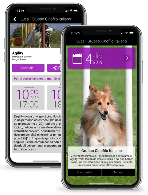 Potrai usare la bacheca virtuale e le notifiche push per tenerli sempre aggiornati sulle tue attività cinofile.